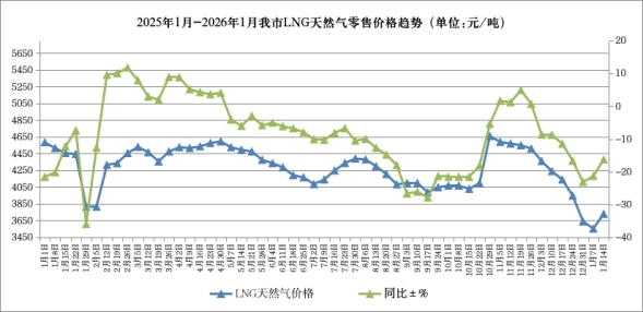 呼和浩特市價格認證監測中心對市場監測數據顯示,本周我市LNG天然氣零售價格為3730元/噸,比上周上漲176元/噸,漲幅4.95%,同比下降16.29%。
