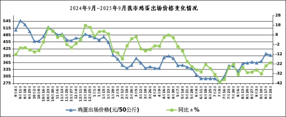 本周我市雞蛋出場價格為396.673元/50公斤(3.97元/斤),比上周下降1.65%,同比下降20.67%。