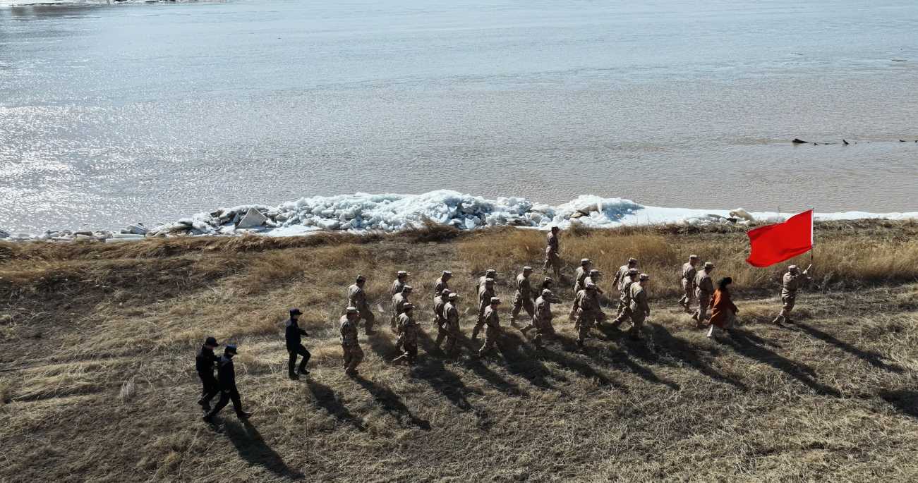 春寒料峭,黃河凌涌。隨著氣溫持續回升、凍土逐漸消融,黃河正式進入開河關鍵期,凌汛防控工作進入關鍵階段。為堅決守住黃河清水河段防凌安全底線,全力保障沿岸人民群眾生命財產安全,清水河縣人民武裝部結合黃河防凌備勤任務,在黃河喇嘛灣重點河段組織“黨政軍警民”防凌巡河行動,以聯防聯控、晝夜值守、全域巡查的硬核舉措,織密扎牢65公里河段防凌安全防護網。