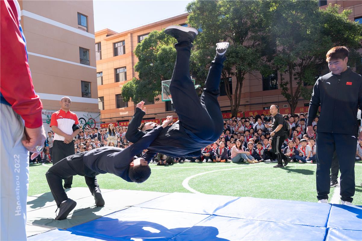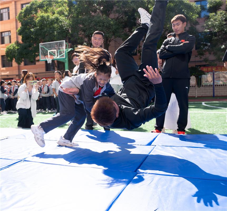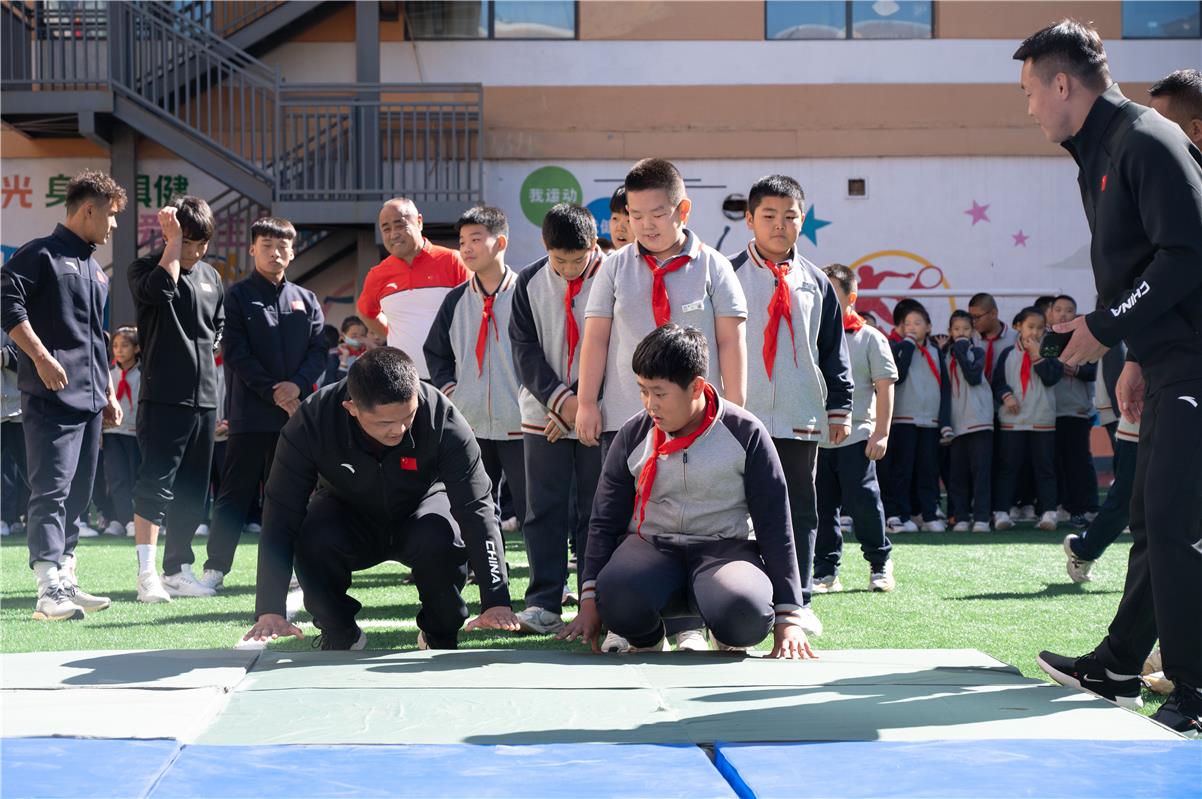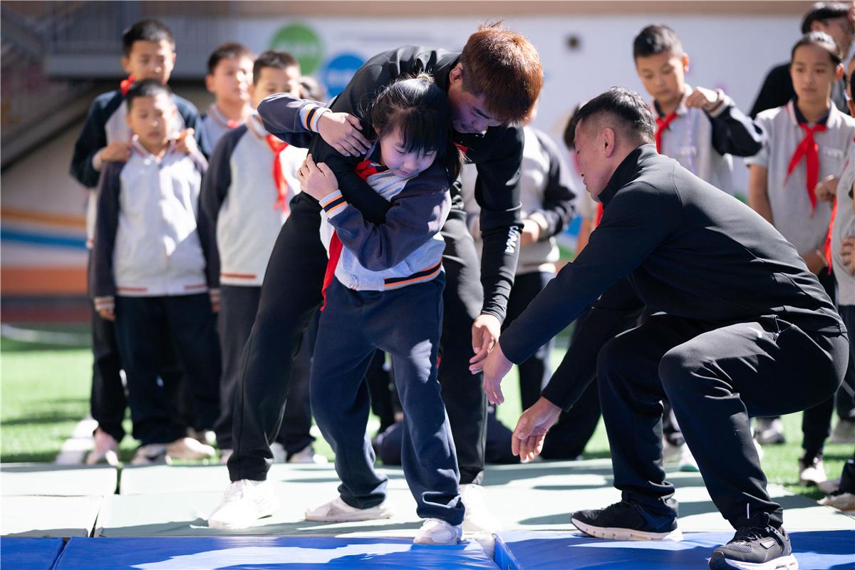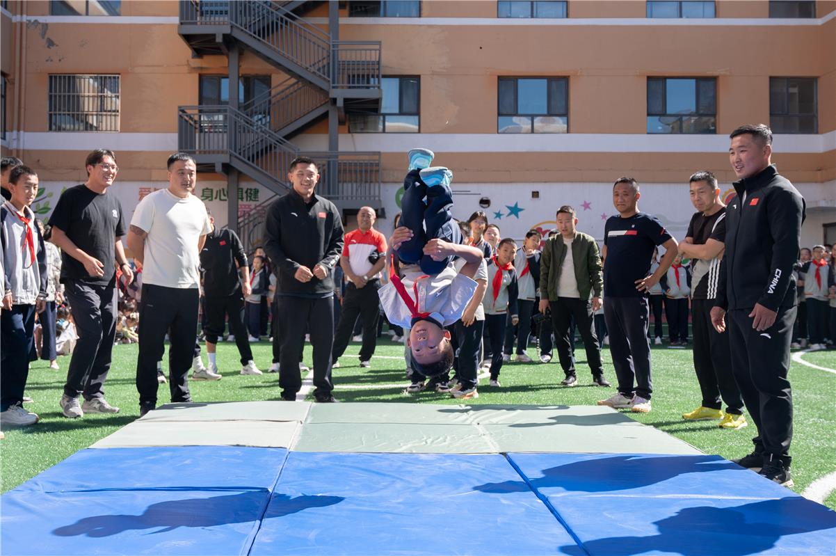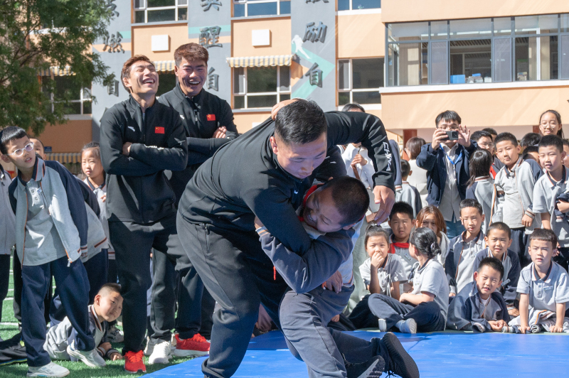 活動中,內蒙古重競技運動管理中心的工作人員、摔跤項目運動員與學校師生親密互動,帶領學生體驗摔跤運動,感受摔跤運動魅力。本次揭牌的少年摔跤訓練基地,是該校推進體育文化與特色課程的一次深度融合,為學生搭建與專業體育項目交流平臺,推動體育精神在校園傳承與發揚。