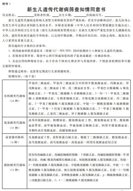 4.新生兒遺傳代謝病篩查知情同意書