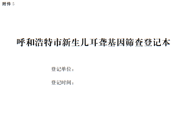 5.呼和浩特市新生兒耳聾基因篩查登記本