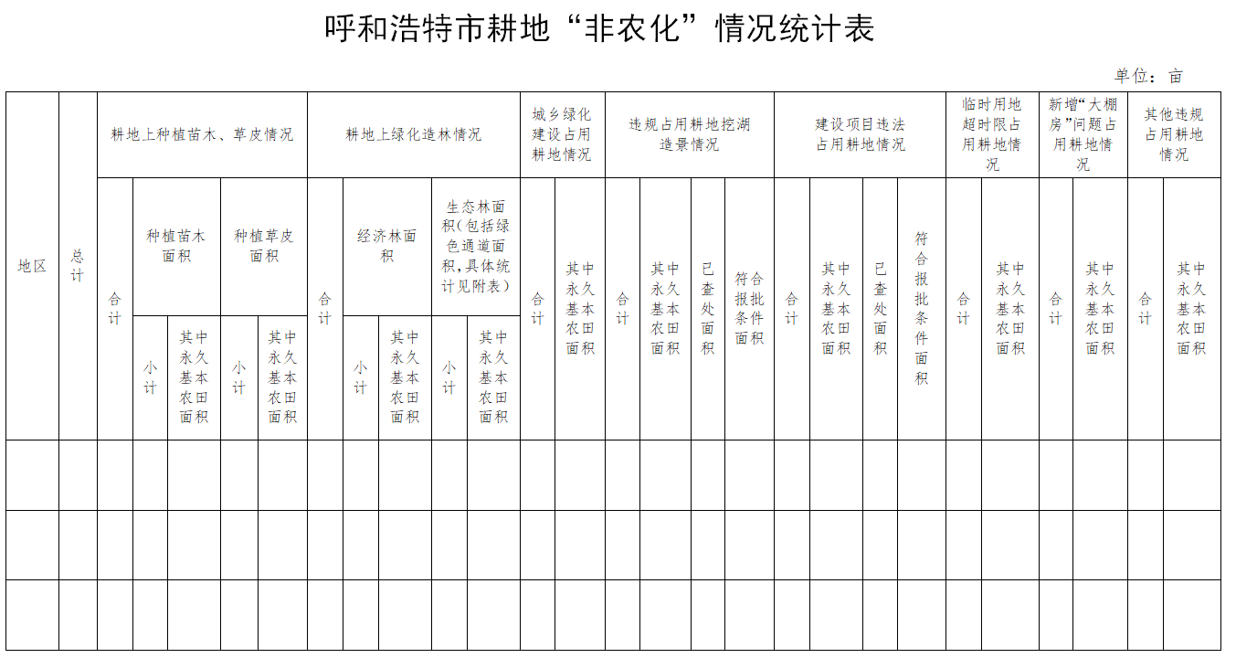 2.呼和浩特市耕地“非農(nóng)化”情況統(tǒng)計表