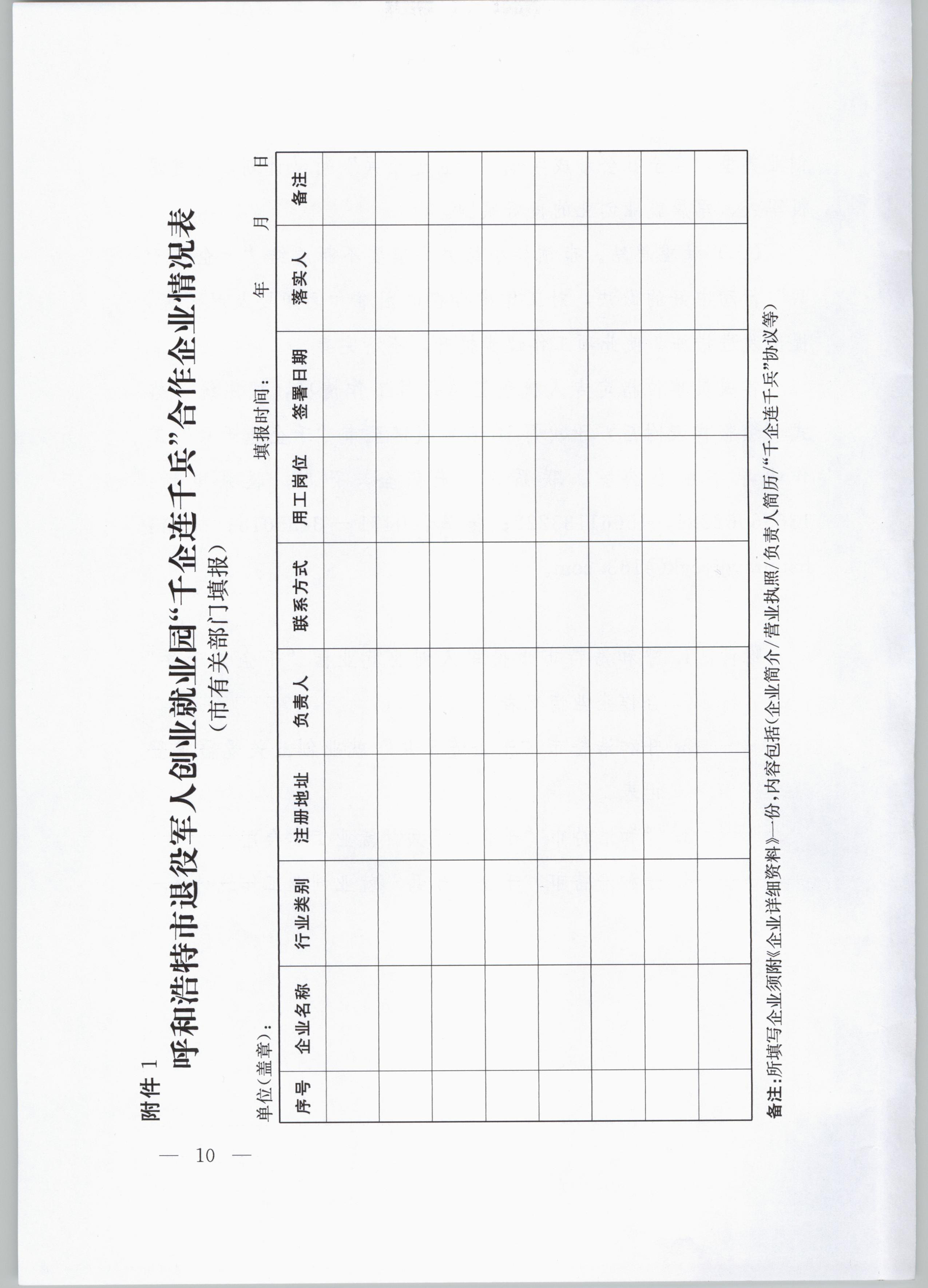 附件:1.呼和浩特市退役軍人創(chuàng)業(yè)就業(yè)園“千企連千兵”合作企業(yè)情況表