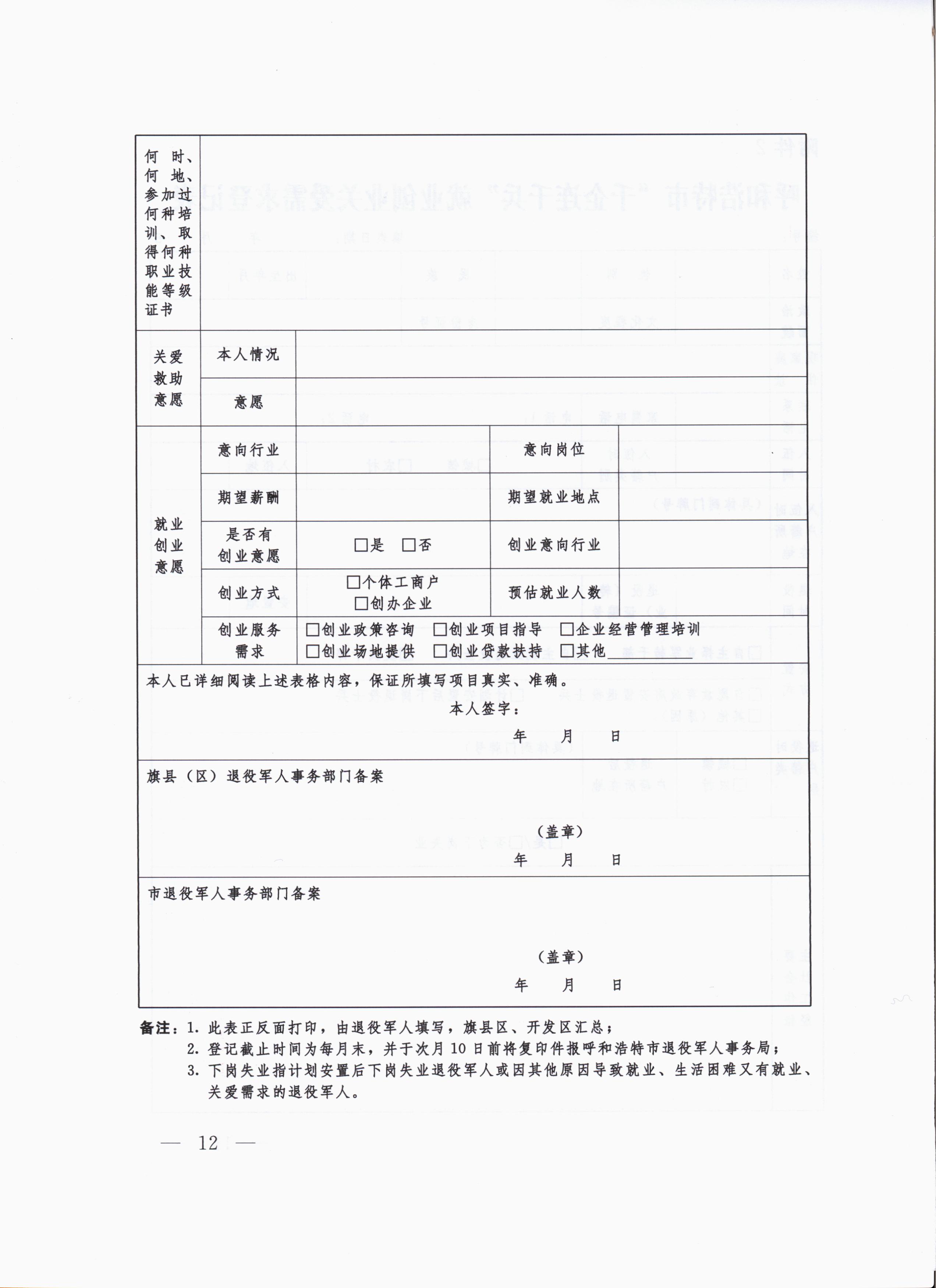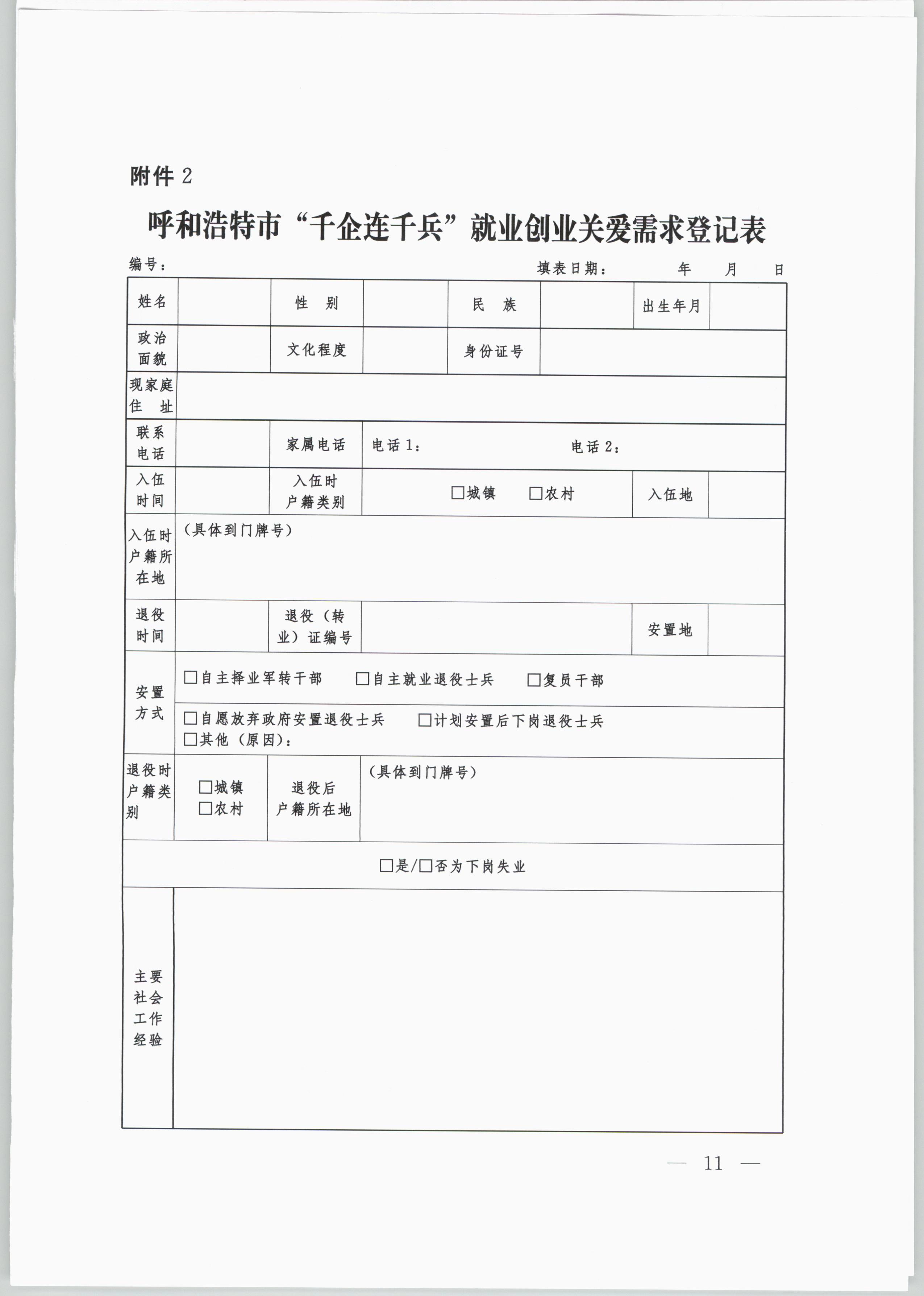 ? ? ? ? ? ?2.呼和浩特市“千企連千兵”就業(yè)創(chuàng)業(yè)關(guān)愛需求登記表
