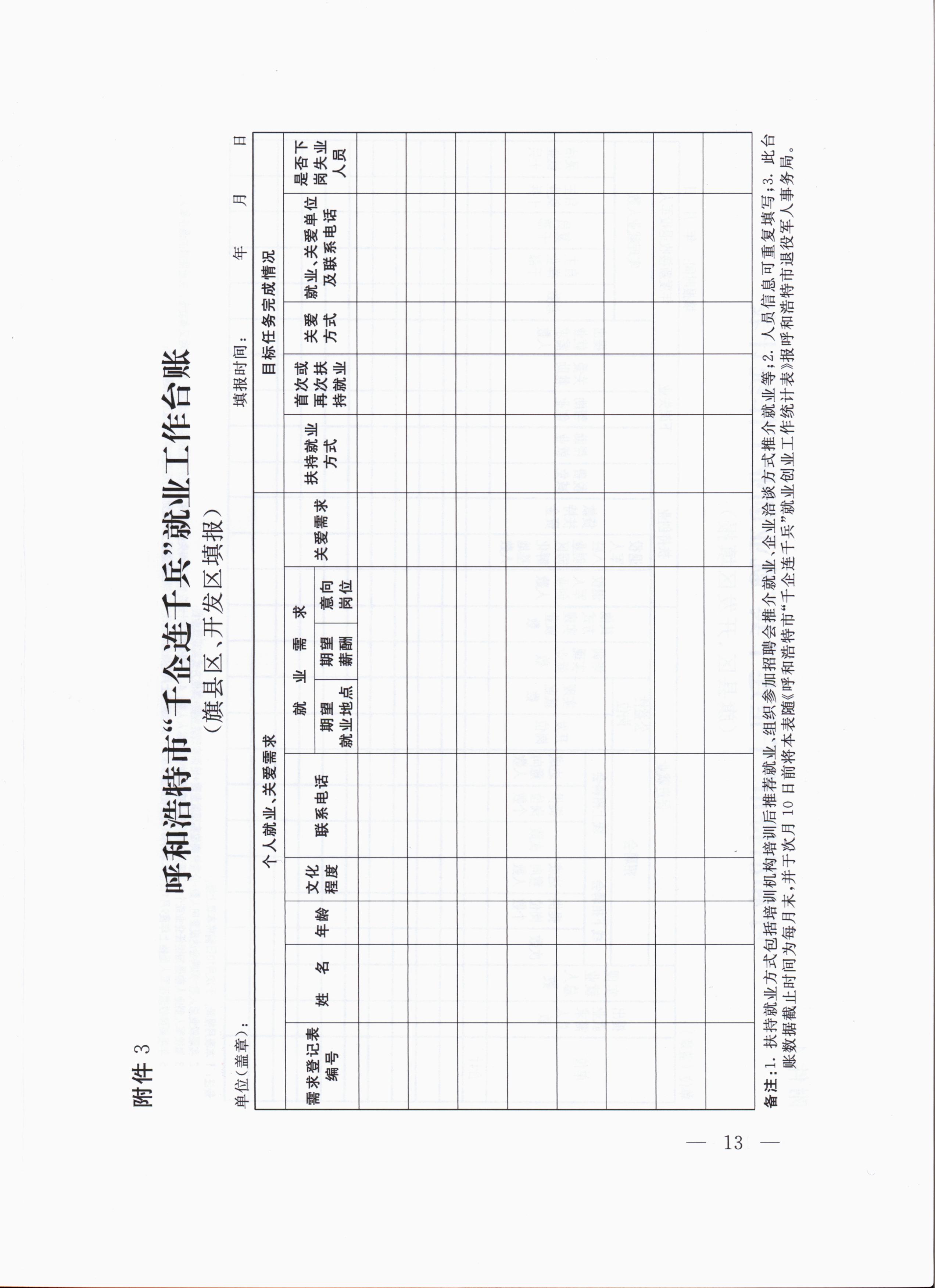 ? ? ? ? ? ?3.呼和浩特市“千企連千兵”就業(yè)工作臺(tái)賬