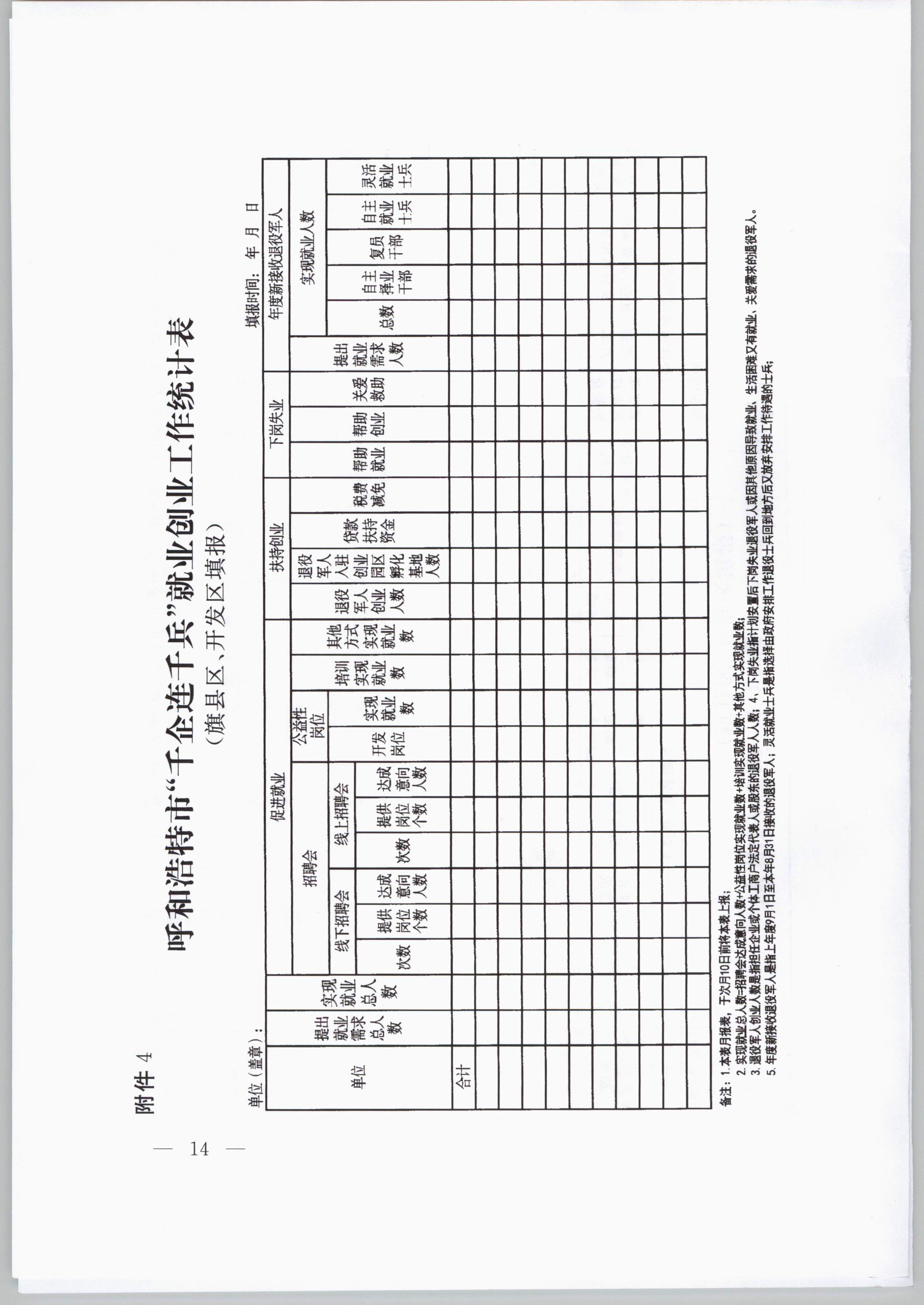 ? ? ? ? ? ?4.呼和浩特市“千企連千兵”就業(yè)創(chuàng)業(yè)工作統(tǒng)計(jì)表