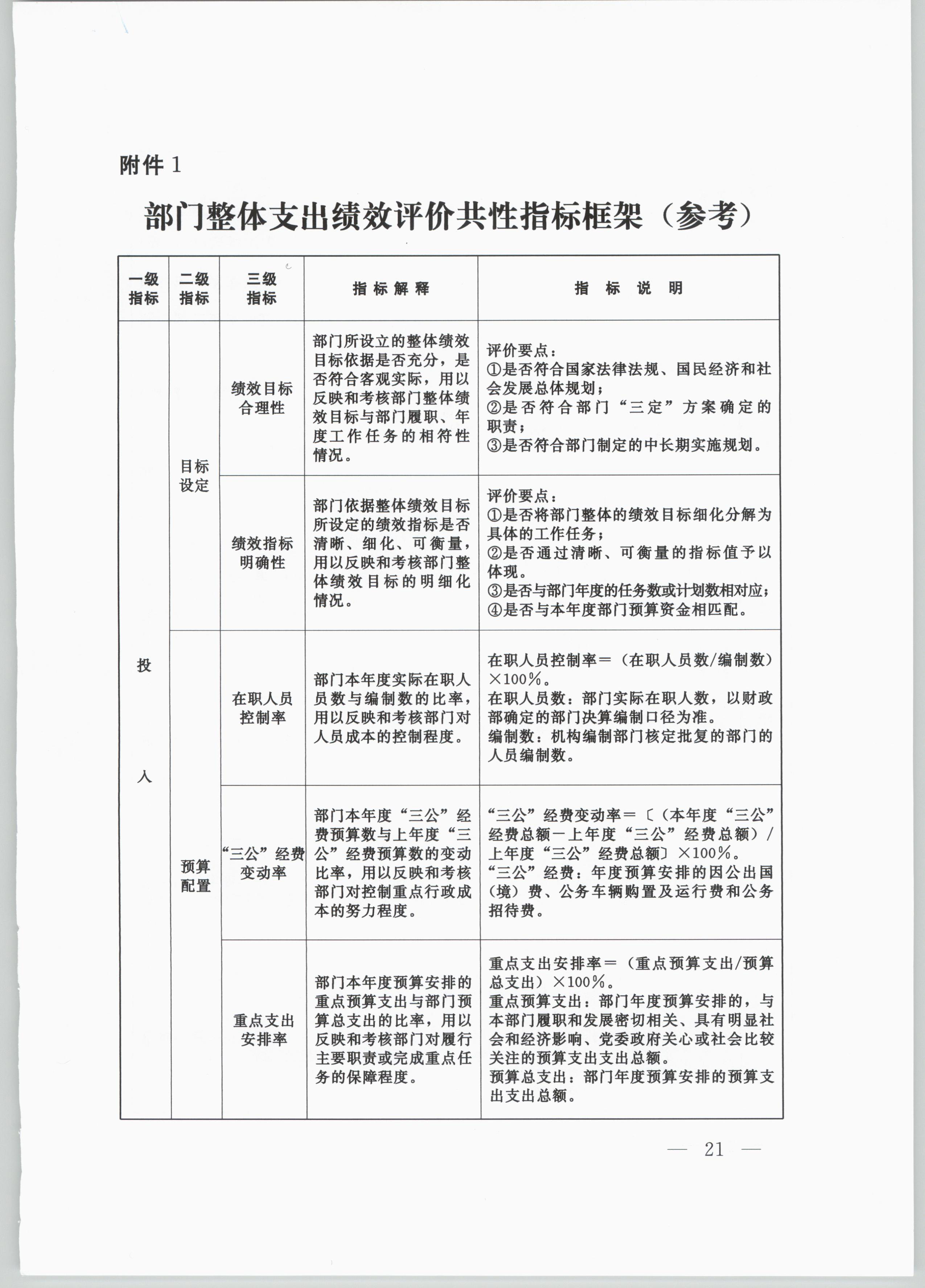 附件:1.部門整體支出績效評價共性指標框架(參考)