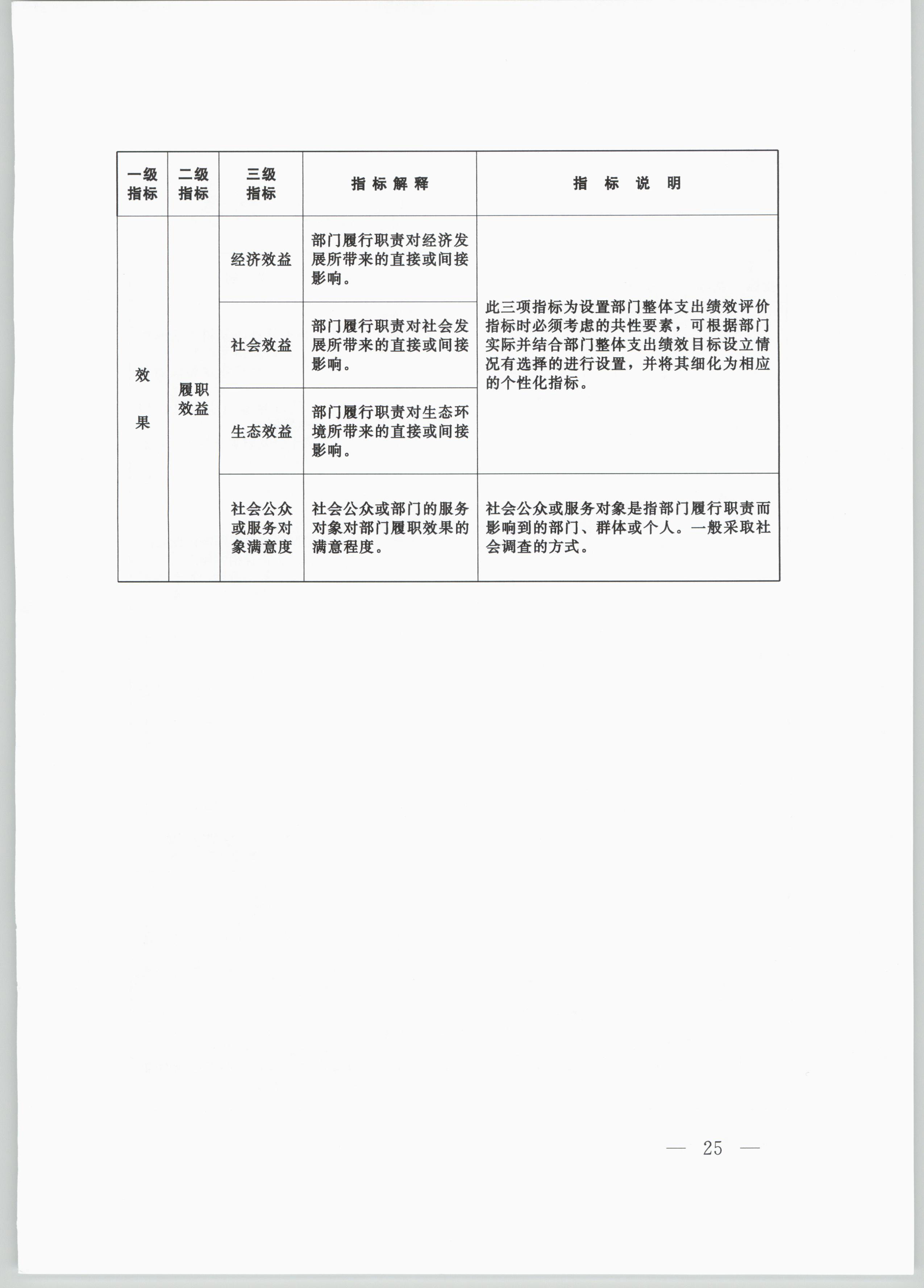 (四)系統性原則。績效指標評價的設置應當將定量指標與定性指標相結合,能系統反映財政支出所產生的社會效益、經濟效益、環境效益和可持續影響等。