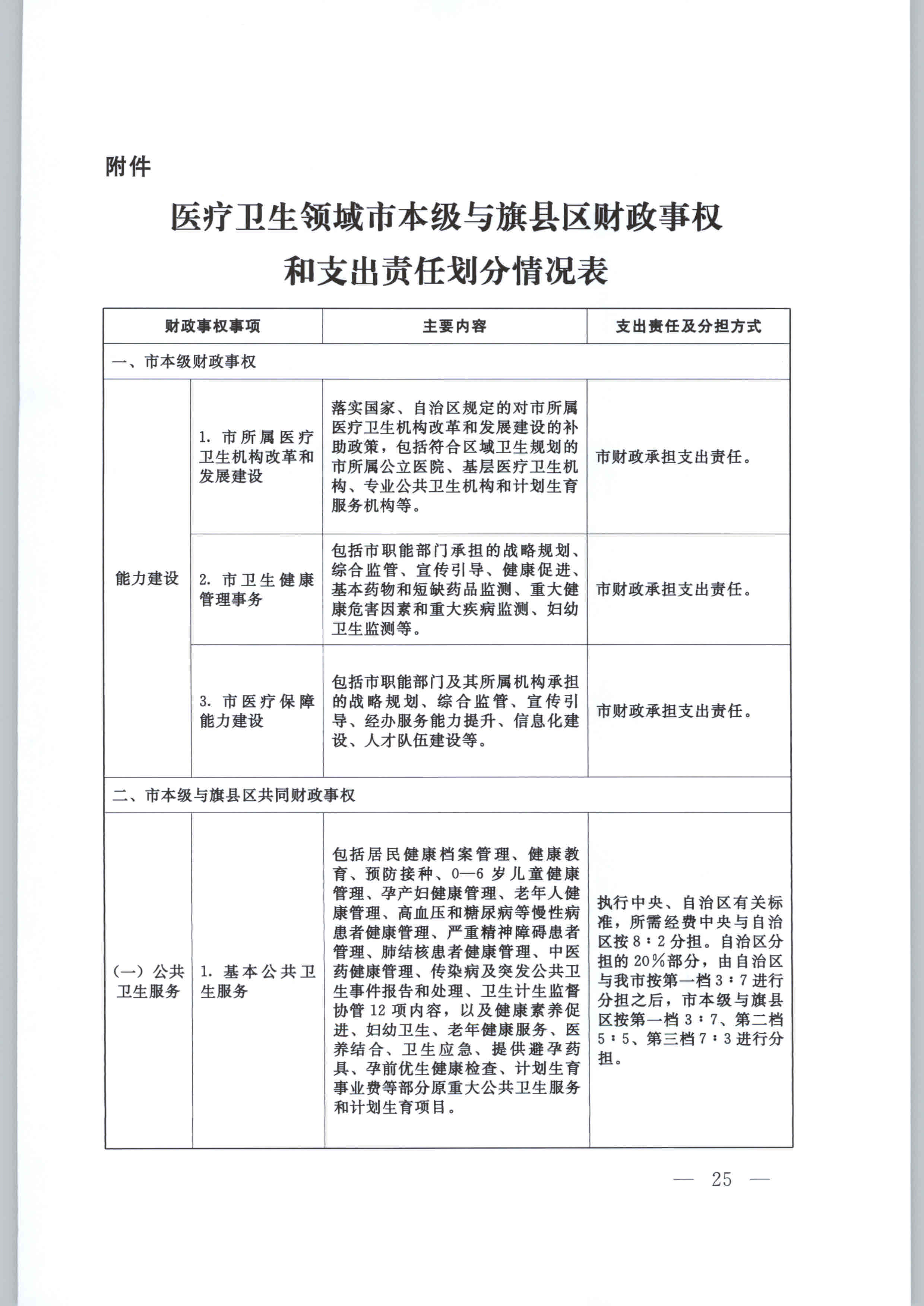 附件:醫療衛生領域市本級與旗縣區財政事權和支出責任劃分情況表