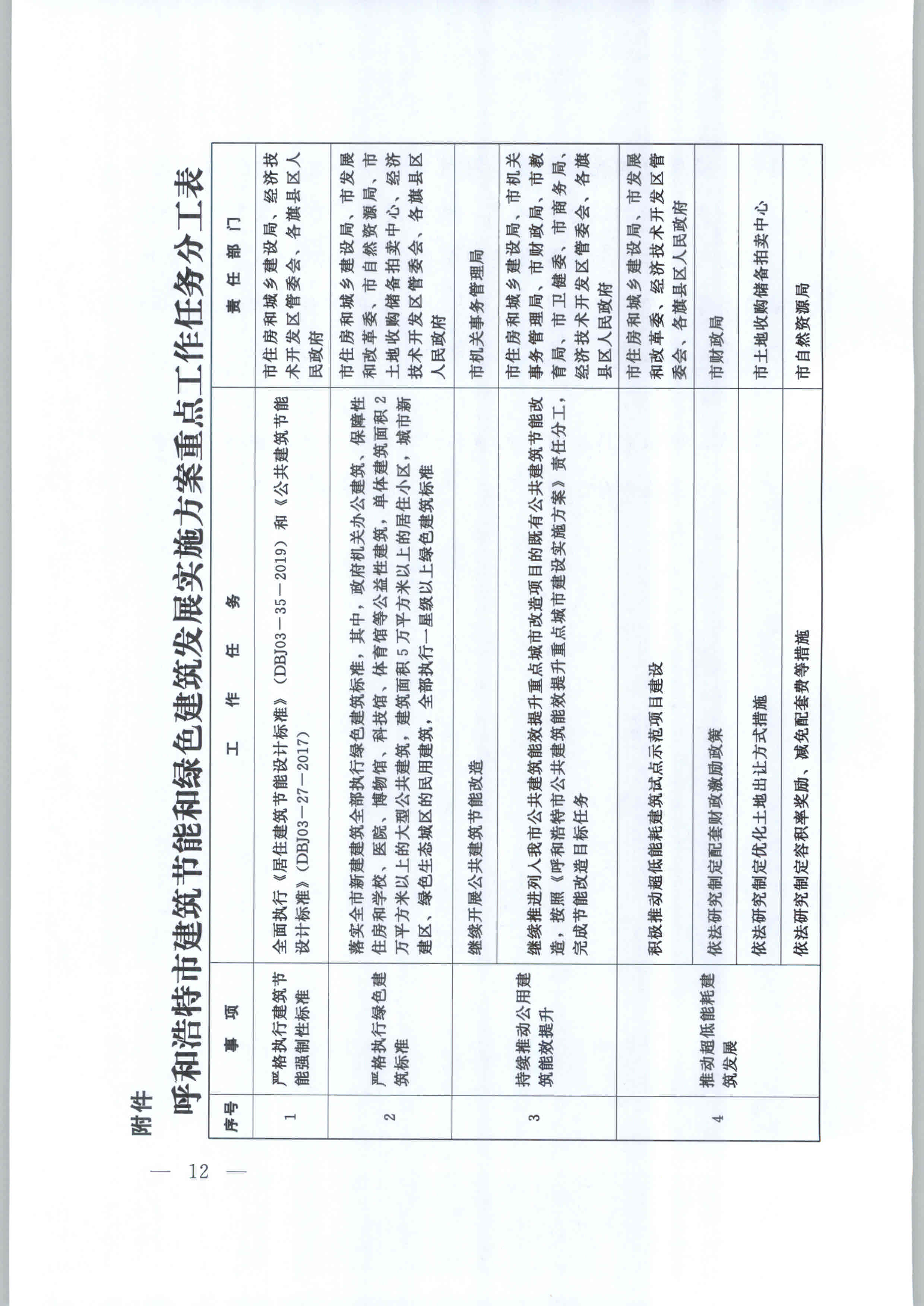 附件:呼和浩特市建筑節能和綠色建筑發展實施方案重點工作任務分工表