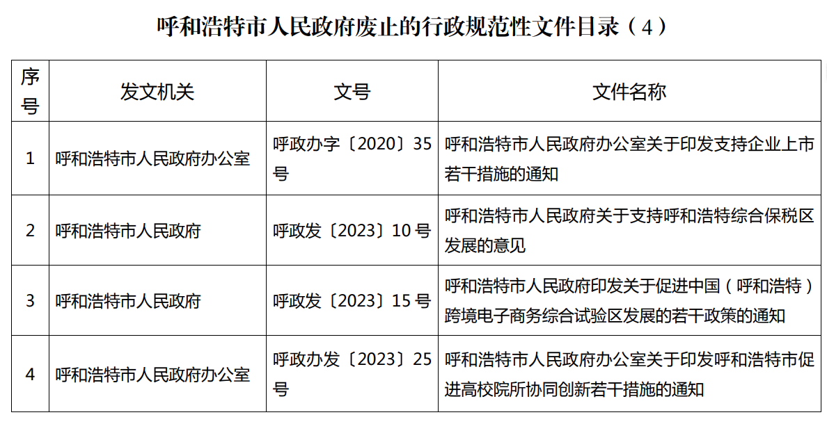 呼和浩特市人民政府關于廢止部分行政規范性文件的通知